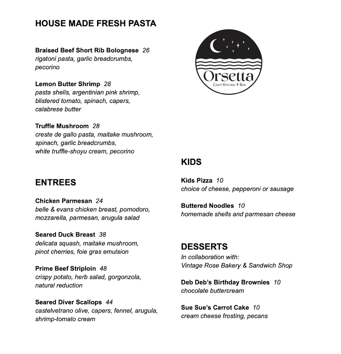 Welcome to Orsetta Craft Kitchen & Bar, where culinary artistry meets a warm, inviting atmosphere. Nestled in De Pere, WI, this vibrant eatery has quickly become a go-to destination for food enthusiasts. The menu showcases an innovative selection of dishes designed to delight the palate, from sumptuous appetizers to thoughtfully crafted entrees.